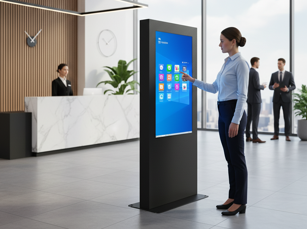 Eles combinam design, tecnologia e funcionalidade, permitindo que empresas de diferentes segmentos ofereçam autoatendimento, exibição de informações, coleta de dados, cadastro e comunicação visual de forma prática e moderna.